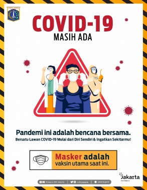 COVID-19 MASIH ADA Pandemi ini adalah bencana bersama. Bersatu Lawan COVID-19 Mulai dari Diri Sendiri & Ingatkan Sekitarmu! Masker adalah vaksin utama saat ini. Pemprov DKI Jakarta @DKIJakarta jakarta.go.id