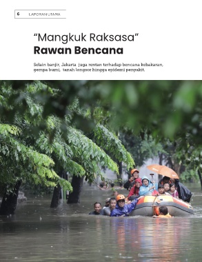 6 LAPORAN UTAMA “Mangkuk Raksasa” Rawan Bencana Selain banjir, Jakarta juga rentan terhadap bencana kebakaran, gempa bumi, tanah longsor hingga epidemi penyakit. EDISI 1 TAHUN 2021 Sarana Informasi Pemerintah Provinsi DKI Jakarta