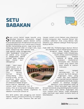 Sdi Setu Babakan, Jakarta Selatan. Danau prototipe kediaman khas orang Betawi, Setu