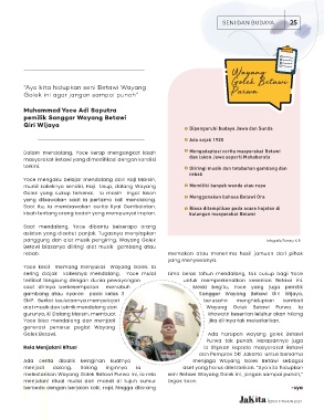 menjadi dalang. Saking inginnya ia aset yang harus dilestarikan. “Ayo kita hidupkan