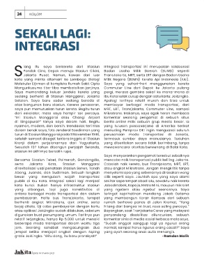 publik di Ibu Kota. Integrasi sekali lagi menjadi sekitar seperempat abad lalu, sewaktu naik kereta
