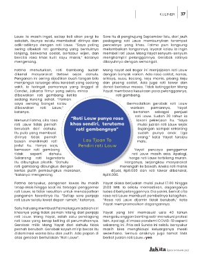 panganan favoritnya itu. “Setiap sore penjaja rasa roti Lauw membuat pembelinya ketagihan.